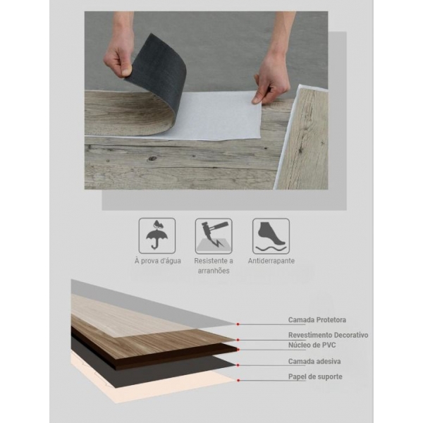Informações do produto: Piso Autocolante Vinilico Caixa 5m2 Regua 91.4x15.2 CARVALHO